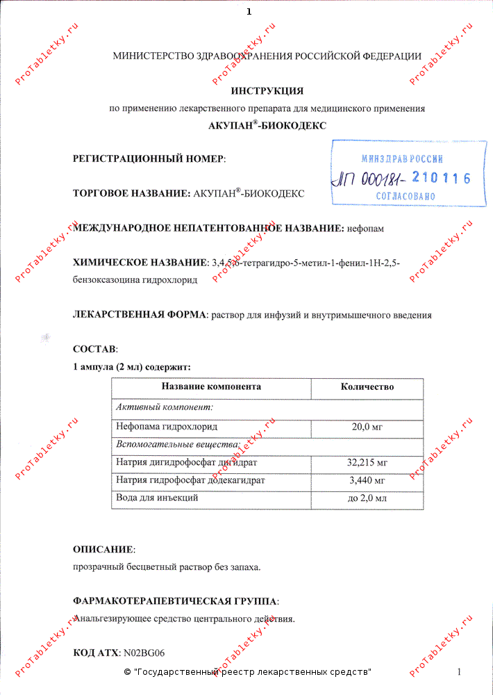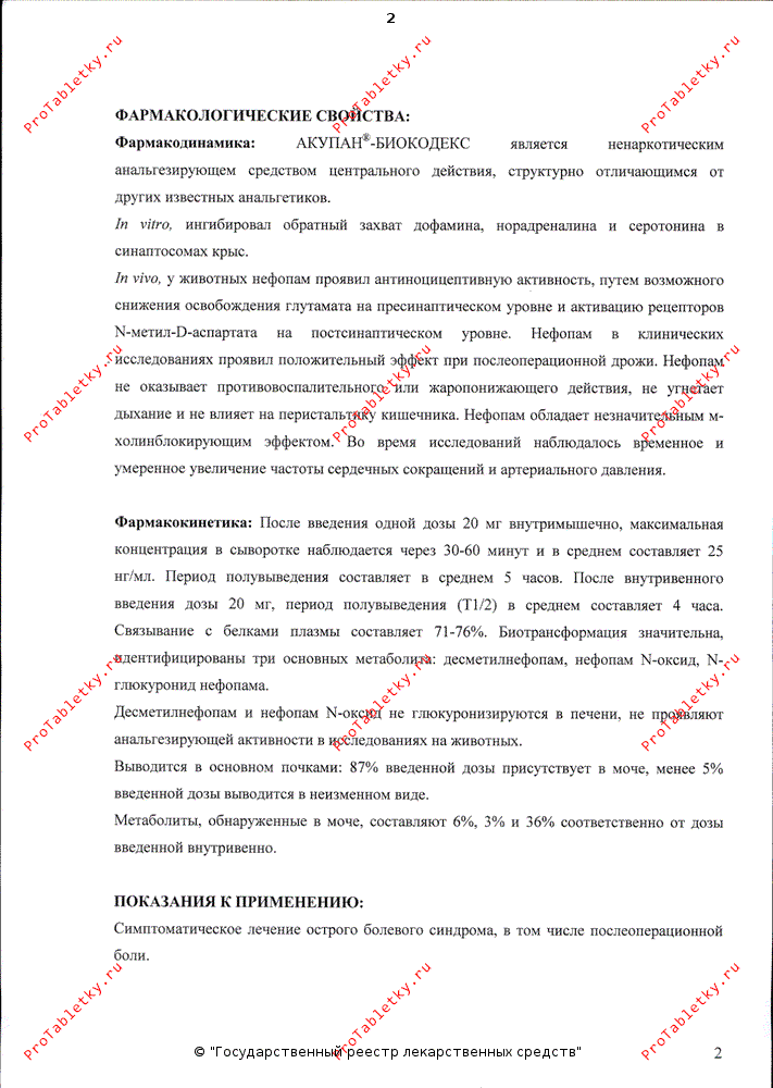 АКУПАН®-БИОКОДЕКС не следует назначать для лечения хронических болевых синдромов, таких как головная боль.
