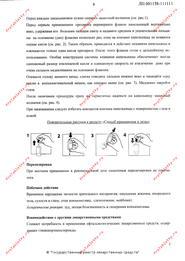 При закапывании следует избегать контактов кончика капельницы с поверхностью глаза и кожей.