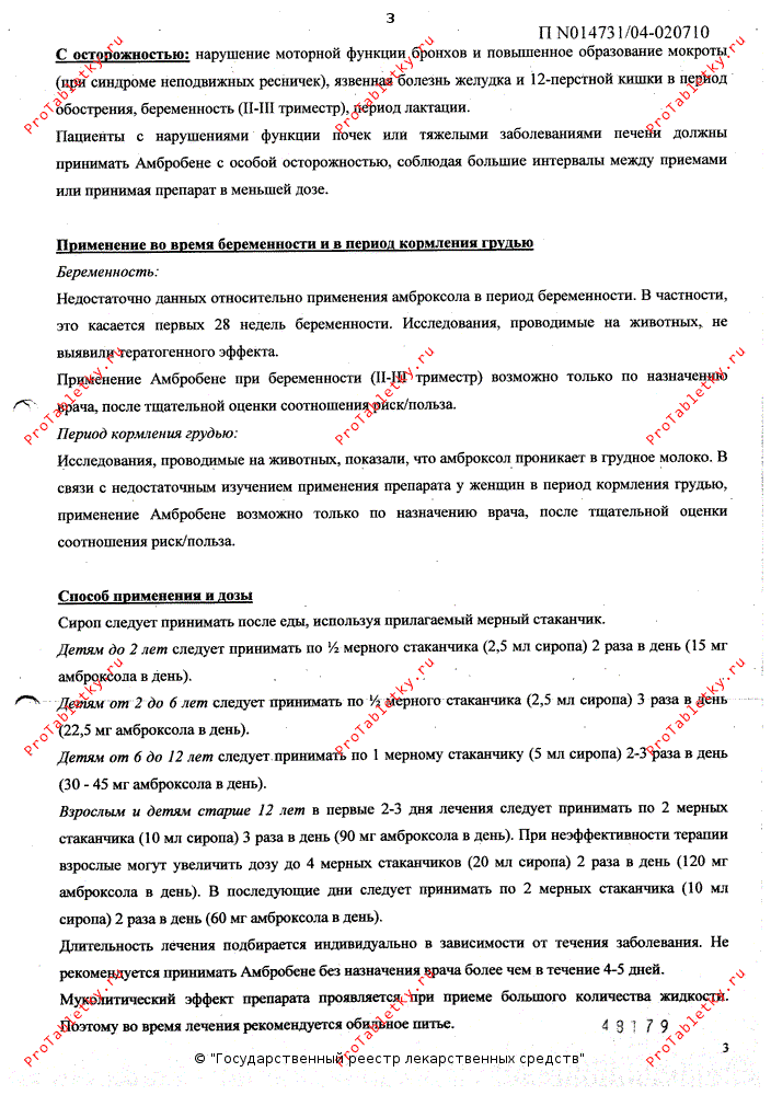 При необходимости применения амброксола в период лактации следует решить вопрос о прекращении грудного вскармливания.