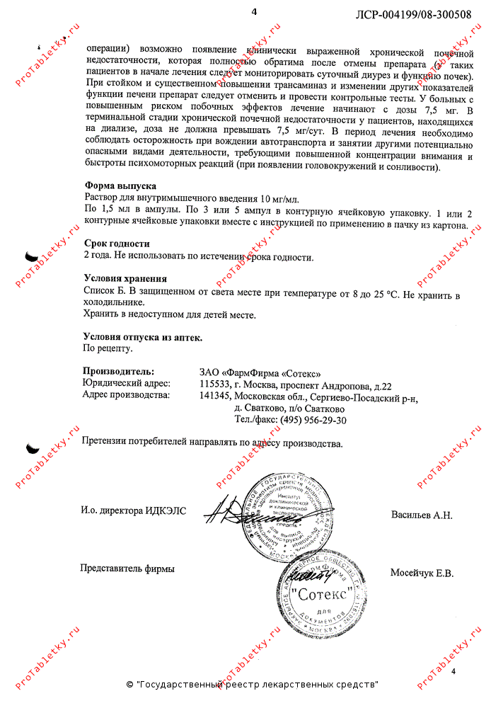 Противопоказан при выраженных нарушениях функции печени.Применение при нарушениях функции почек