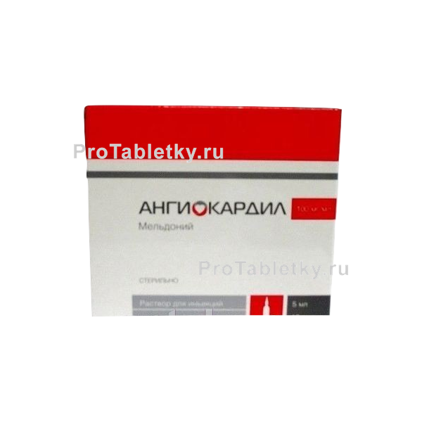 Ангиокардил (активный ингредиент - мельдоний) – метаболический препарат, аналог 4-триметиламмониобутаноата. Угнетает фермент гамма-бутиробетаингидроксиназу, подавляет образование карнитина, препятствует перемещению жирных кислот с длинной цепочкой через клеточные оболочки, сдерживает аккумуляцию в клетках производных ацилкарнитина и ацилкофермента А. В условиях дефицита кислорода нормализует баланс между его доставкой и потреблением, способствует транспорту АТФ, активизирует распад глюкозы, не требующий дополнительного расхода кислорода. На фоне уменьшения содержания карнитина активизируется синтез 4-триметиламмониобутаноата, обладающего сосудорасширяющим действием. Фармакологические эффекты препарата многообразны: поддержание организма в оптимальном рабочем состоянии, снижение психоэмоционального и физического перенапряжения, стимуляция различных видов иммунитета (клеточный, гуморальный), защита и поддержание сердечной функции. При остром ишемическом поражении сердечной мышцы замедляет формирование зоны некроза, форсирует восстановительные процессы. При декомпенсированном нарушении функции сердечной мышцы улучшает ее сократимость, повышает переносимость физической работы, урежает частоту стенокардических эпизодов. При острых и хронических церебральных нарушениях ишемического характера стимулирует кровообращение в ишемических очагах. Эффективен при заболеваниях глазного дна. Повышает функциональную активность ЦНС. После перорального приема быстро абсорбируется в гастроинтестинальном тракте. Биодоступность приближается к 80%. Пиковая концентрация в крови отмечается через 1-2 часа. В организме претерпевает метаболические трансформации. Образовавшиеся метаболиты подвергаются элиминации вместе с мочой. Период полужизни составляет 3-6 часов. Препарат назначают при стенокардии, инфаркте миокарда, декомпенсированном нарушении функции миокарда хронического характера, климактерической кардиомиопатии, нарушениях церебрального кровообращения, снижении работоспособности, повышенной утомляемости, в период восстановления после хирургических вмешательств, абстинентном синдроме.