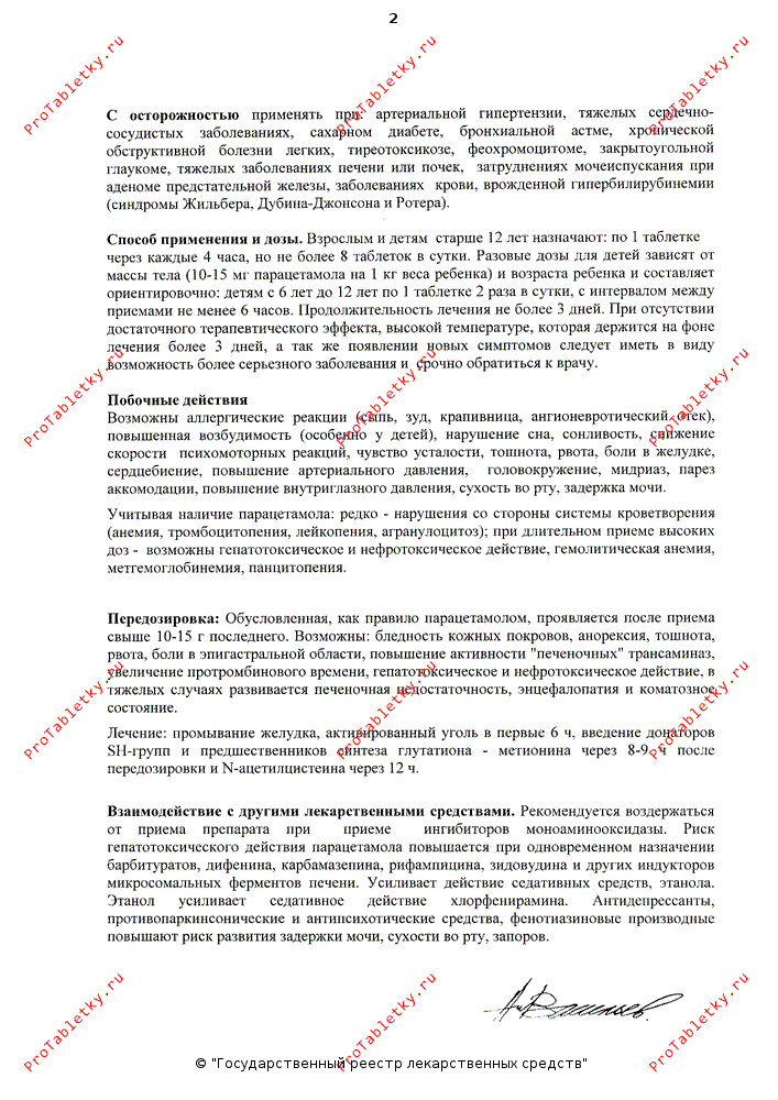 Не принимать вместе с другими лекарственными средствами, содержащими парацетамол.