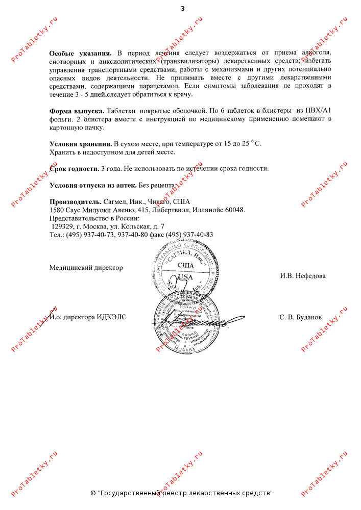 Пациента следует предупредить, что при отсутствии достаточного терапевтического эффекта, высокой температуре, которая держится на фоне лечения более 3 дней, а так же появлении новых симптомов следует иметь в виду возможность более серьезного заболевания и срочно обратиться к врачу.