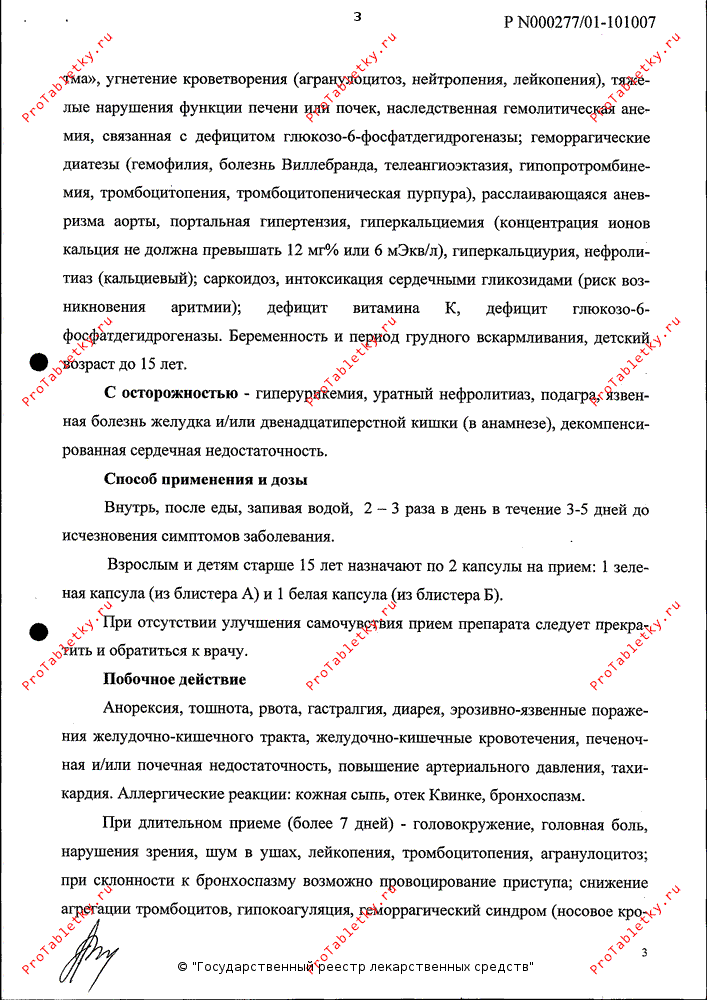Капсулы принимают внутрь 2-3 раза/сут после еды, запивая водой. Пациент должен быть предупрежден, что при отсутствии улучшения самочувствия прием препарата следует прекратить и обратиться к врачу.