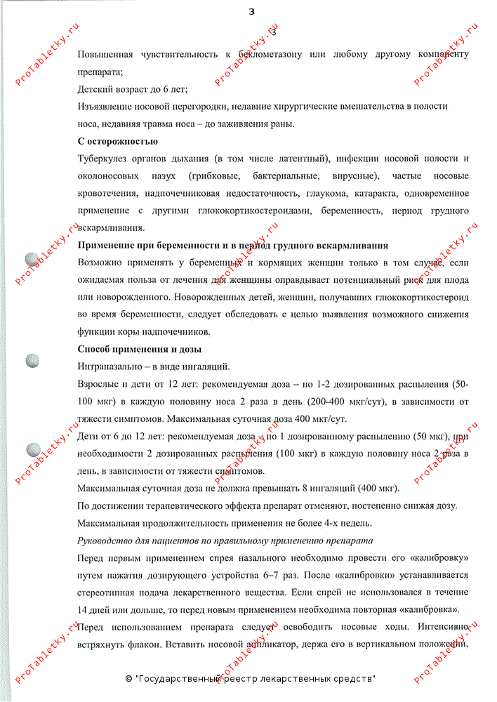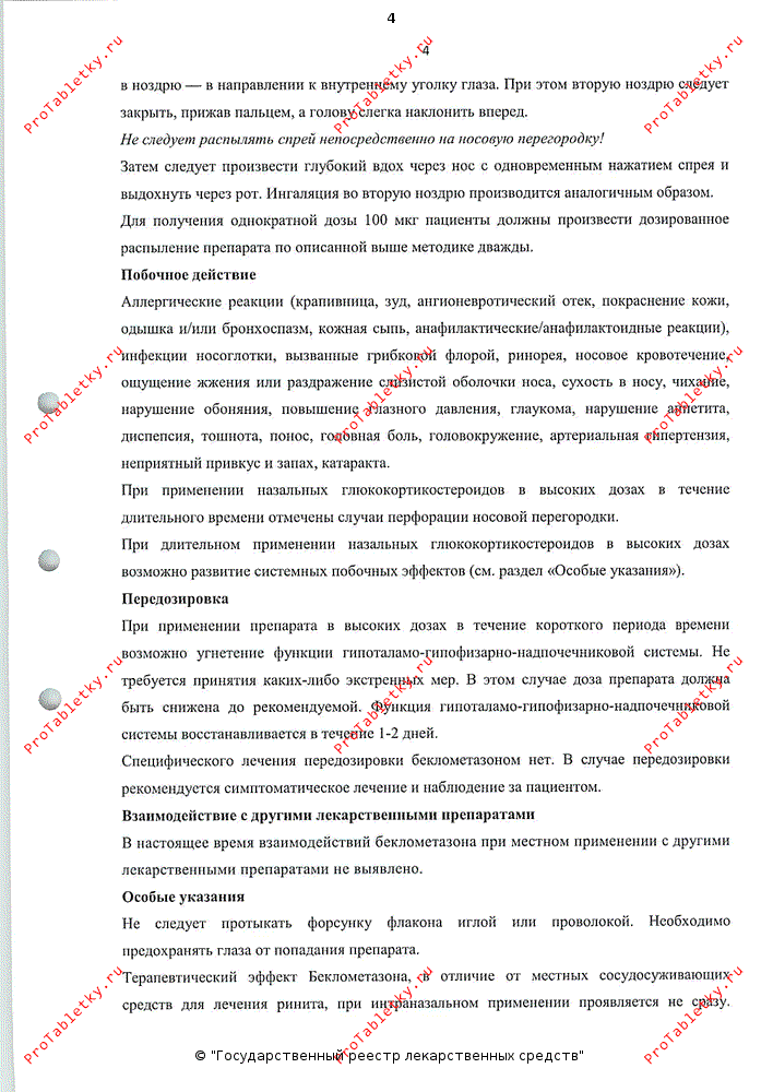 При развитии кандидоза полости рта и верхних дыхательных путей показана местная противогрибковая терапия без прекращения лечения беклометазоном. Инфекционно-воспалительные заболевания полости носа и придаточных пазух при назначении соответствующей терапии не являются противопоказанием для лечения беклометазоном.