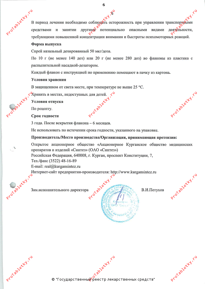 При интраназальном введении доза составляет 400 мкг/сут, кратность применения 1-4 раза/сут.