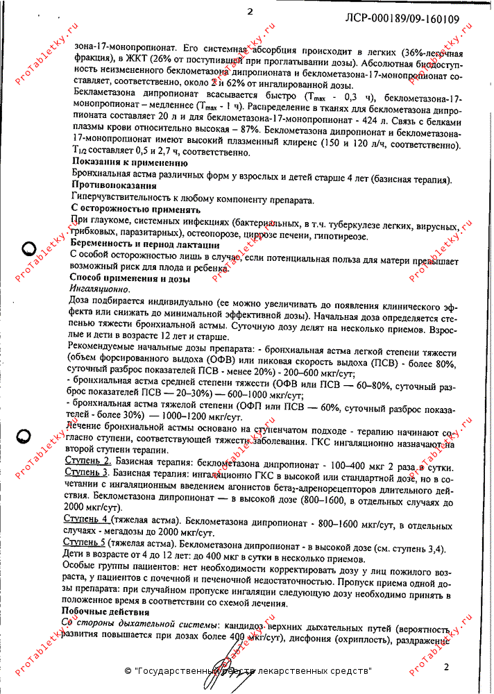 При тяжелом обострении бронхиальной астмы или недостаточной эффективности проводимой терапии следует увеличить дозу ингаляционного беклометазона дипропионата и в случае необходимости назначить системный ГКС и/или при развитии инфекции - антибиотик.