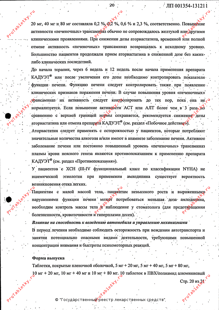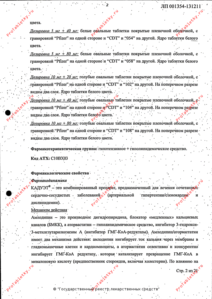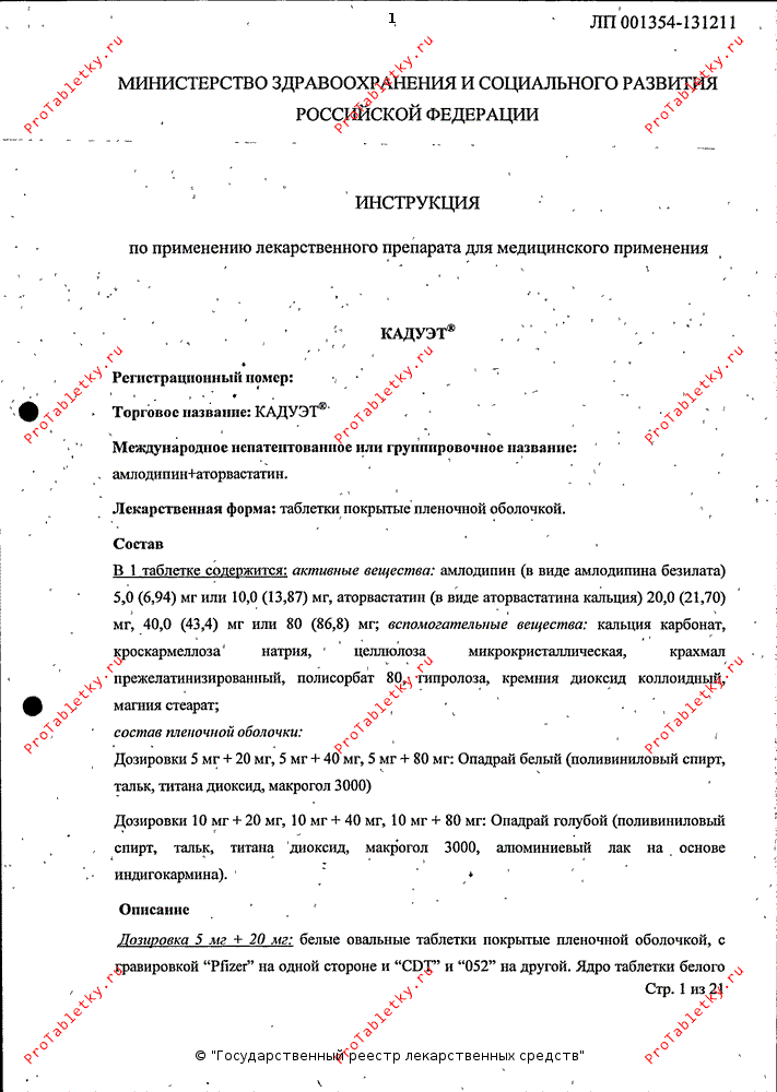 Инструкция по применению кадуэта