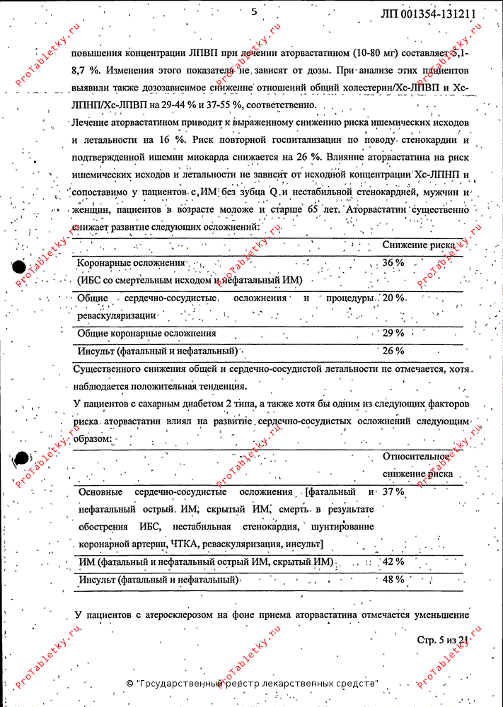 В связи с тем, что по данным промежуточного анализа эффект терапии препарата существенно превышал эффект применения плацебо, было принято решение о досрочном прекращении исследования через 3.3 года вместо предполагаемых 5 лет. Аторвастатин существенно снижал развитие следующих осложнений: