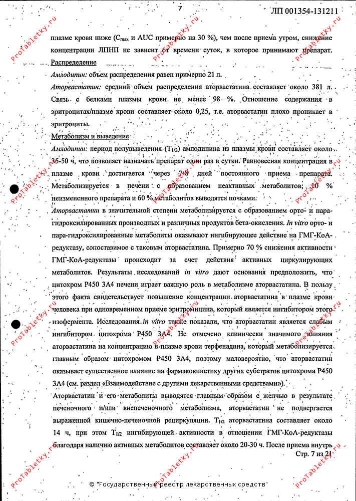 Как амлодипин, так и аторвастатин активно связываются с белками плазмы крови, поэтому существенное увеличение клиренса комбинированного препарата при гемодиализе маловероятно.