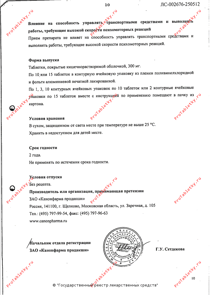 Длительность лечения (без консультации с врачом) не должна превышать 7 дней при назначении в качестве анальгезирующего средства и более 3 дней в качестве жаропонижающего.