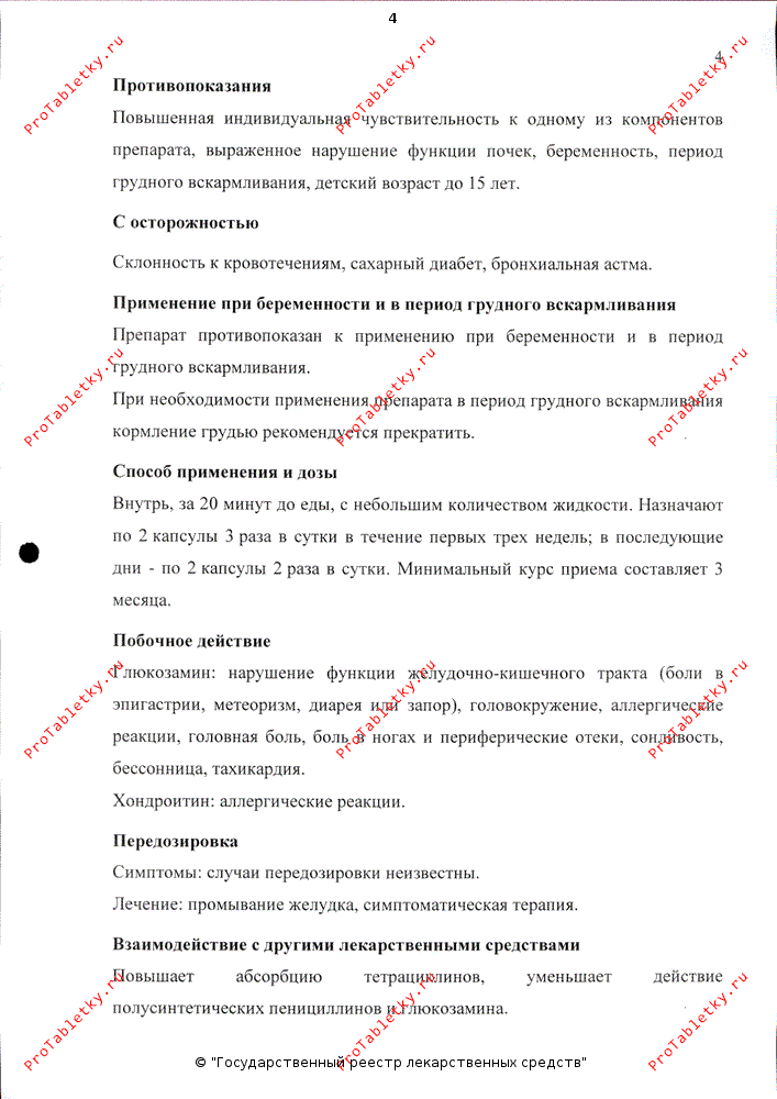 Глюкозамин: нарушение функции желудочно-кишечного тракта (боли в эпигастрии, метеоризм, диарея или запор), головокружение, аллергические реакции, головная боль, боль в ногах и периферические отеки, сонливость, бессонница, тахикардия.