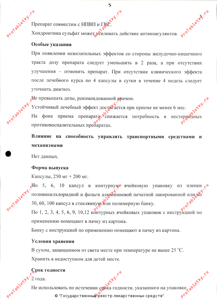 Устойчивый лечебный эффект достигается при приеме не менее 6 мес. На фоне приема препарата снижается потребность в НПВП.