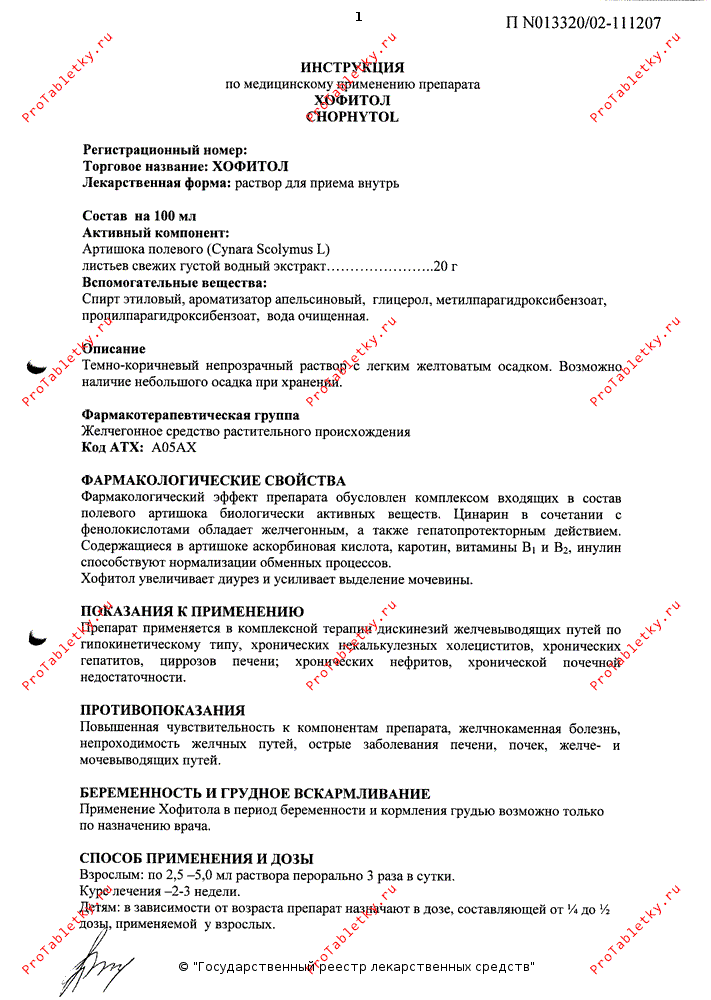 Хофитол - хороший желчегонный препарат. Назначаю при дискинезиях желчевыводящих путей, холицистите (при гипомоторной функции жёлчного пузыря), пиелонефрите. Обязательно перед назначением нужно обследовать пациента, желательно сдать БХ крови, УЗИ ОБП, УЗИ почек, исключить камни. Переносится хорошо. Рекомендую. | |||||||||