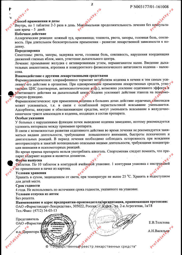Прочие: при длительном применении возможно развитие лекарственной зависимости к кодеину.
