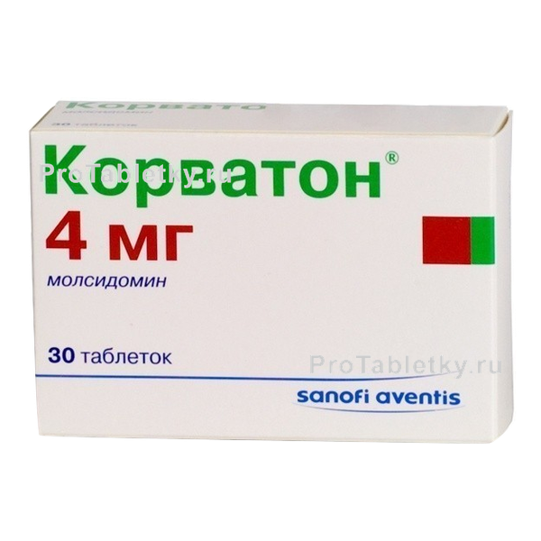 Основной механизм антиангинального действия молсидомина заключается в снижении преднагрузки на сердце. Молсидомин снижает венозное давление, конечное диастолическое давление в желудочках и давление в легочной артерии. Снижает потребность миокарда в кислороде. Расширяет крупные коронарные артерии, улучшает коллатеральное кровообращение при коронарном атеросклерозе. При хронической сердечной недостаточности под влиянием Корватона уменьшается дилатация желудочков. Кроме того, препарат ингибирует раннюю фазу агрегации тромбоцитов, уменьшает выделение (или синтез) серотонина, тромбоксана и других факторов, способствующих агрегации тромбоцитов.