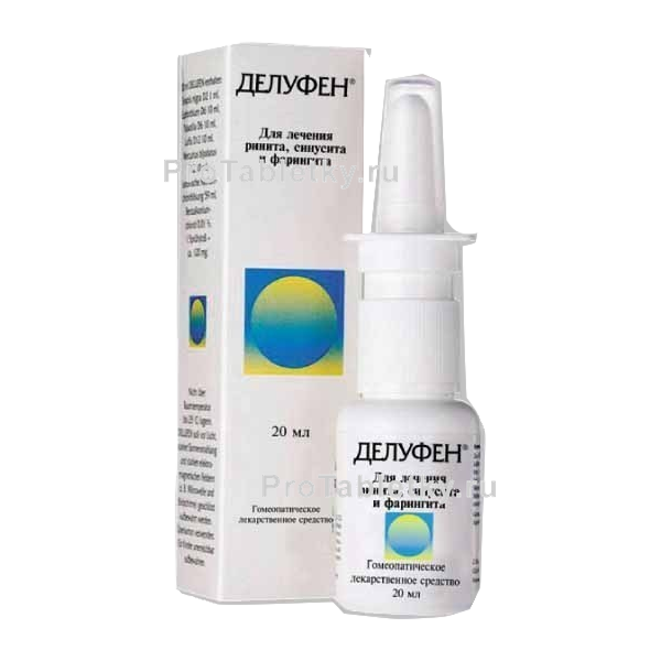 Обладает антибактериальным действием, стимулирует локальный иммунитет. Не применяется при индивидуальной непереносимости компонентов. Безопасность препарата при его приеме беременными и кормящими женщинами не изучалась. На начальном этапе лечения кратность приема лекарственного средства – до 8 раз в день, периодичность впрыскивания в носовые ходы - каждые 30-60 минут. По мере улучшения состояния пациента кратность применения Делуфена сокращают до 4 раз в день. Продолжительность медикаментозного курса: от 1 недели при остром рините до 8 недель при хроническом рините. Возможно повторение медикаментозного курса по согласованию с врачом. Нежелательные побочные явления при применении препарата не регистрировались. Делуфен можно сочетать с любыми другими лекарственными средствами: какие-либо нежелательные взаимодействия не отмечались. Делуфен не всасывается в системный кровоток. Учитывая, что препарат содержит натуральные компоненты, легкое помутнение раствора и незначительное изменение вкуса, цвета и запаха не являются признаком недоброкачественности и снижения эффективности.