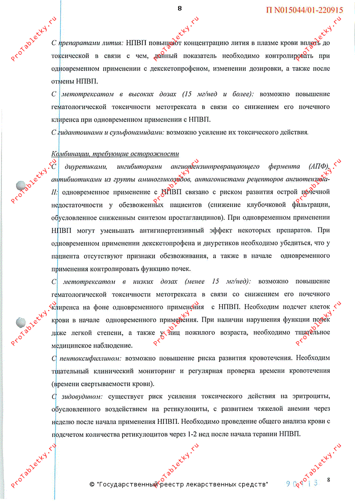 Одновременное применение Дексалгина 25 с другими НПВС может повысить риск возникновения побочных эффектов.
