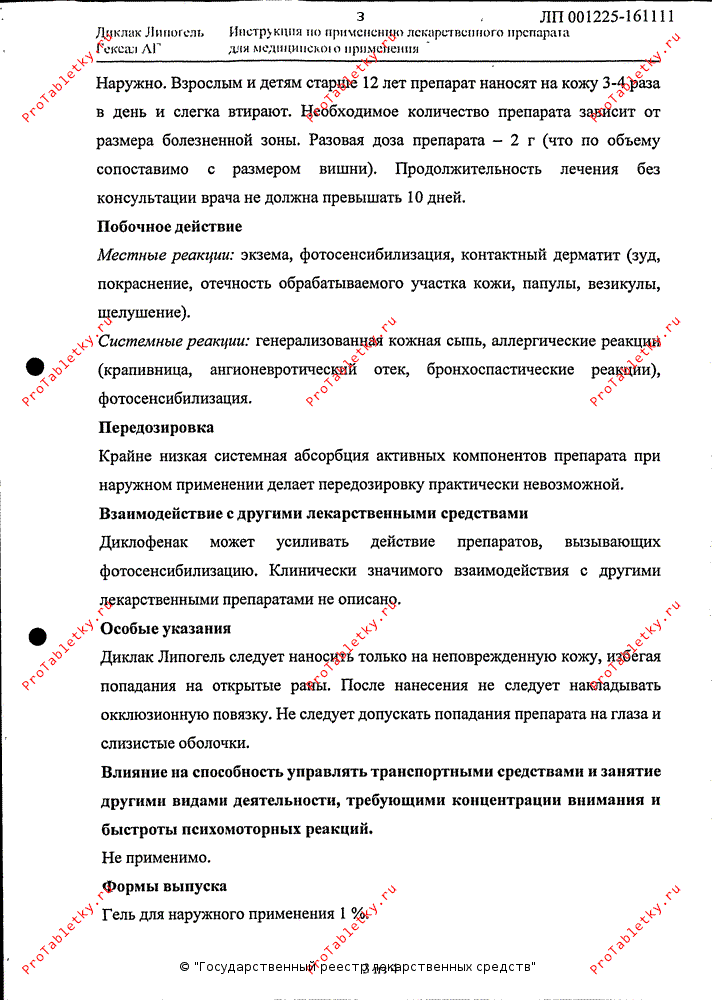 При длительном наружном применении и/или нанесении на обширные поверхности тела возможны системные побочные эффекты вследствие резорбтивного действия диклофенака.