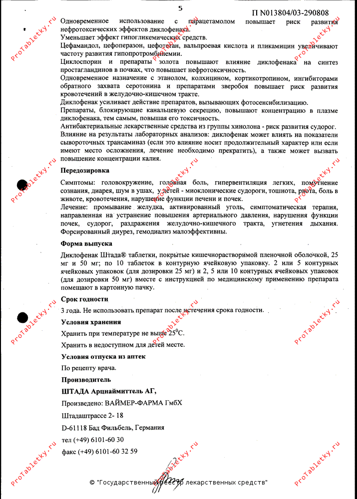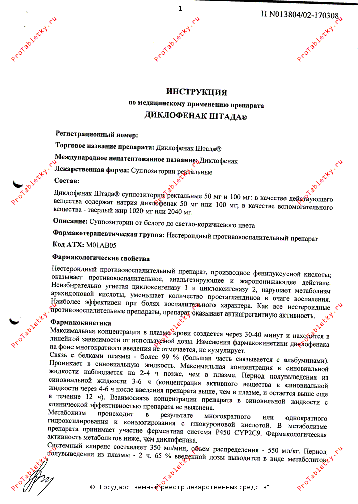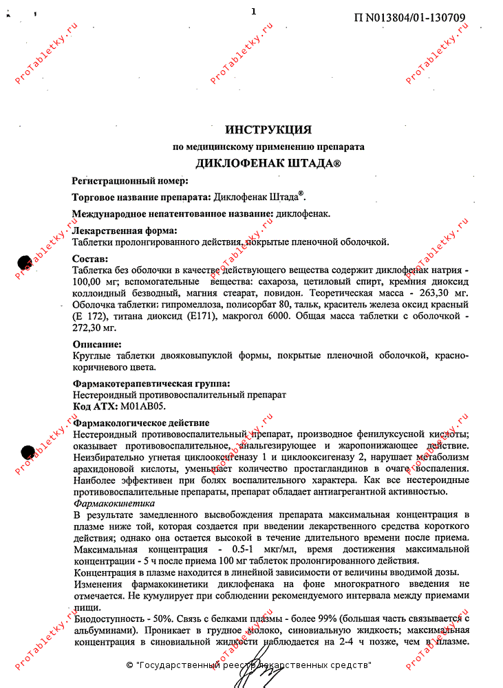 Инструкция по применению диклофенака штады