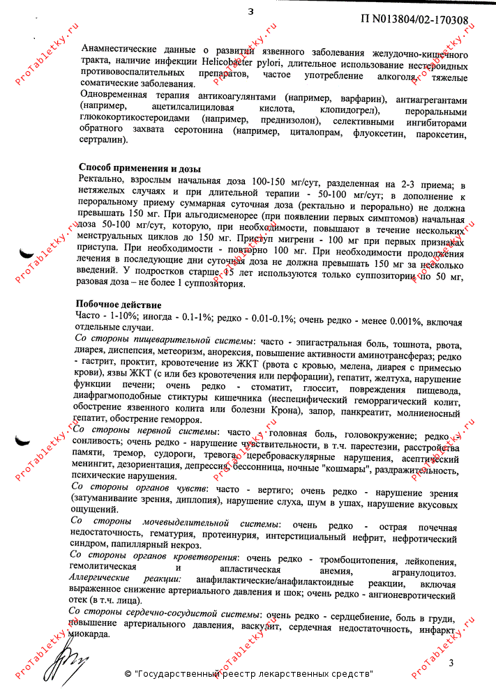 Со стороны пищеварительной системы: тошнота, рвота, анорексия, боли и неприятные ощущения в эпигастральной области, метеоризм, запор, диарея; в отдельных случаях - эрозивно-язвенные поражения, кровотечения и перфорации ЖКТ; редко - нарушение функции печени. При ректальном введении в единичных случаях отмечались воспаление толстой кишки с кровотечением, обострение язвенного колита.