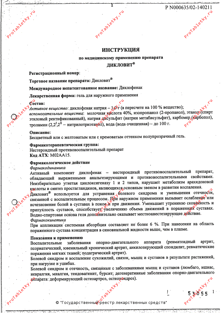 Дикловит (действующее вещество — диклофенак) — отечественное нестероидное противовоспалительное средство (НПВС), выпускаемое в двух лекарственных формах: гель и ректальные суппозитории. Оказывает мощное противовоспалительное, обезболивающее, антипиретическое и антиагрегантное действие. Диклофенак (дикловит) справедливо считается лидером среди всех препаратов группы НПВС по соотношению терапевтической эффективности, частоты нежелательных побочных явлений и стоимости. НПВС используются при ряде патологических состояний, сопровождающихся повышением температуры до фебрильных значений (как инфекционной, так и неинфекционной природы), а также для лечения дегенеративно–дистрофических воспалительных болезней суставов. Механизм действия НПВС един для всех представителей данной фармакологической группы и основан на подавлении активности циклооксигеназы (ЦОГ), участвующей в синтезе медиаторов боли и воспаления простагландинов. Таким образом, ингибируя ЦОГ, НПВС нивелируют проявления воспаления. Способность устранять боль является ключевым фактором столь широкого распространения НПВС в листках назначения терапевтов, хирургов и ревматологов. В отличие от опиоидных анальгетиков, НПВС не вызывают патологической зависимости и не подавляют активность дыхательного центра. Примерно 1/5 часть всех стационарных пациентов с заболеваниями внутренних органов получают НПВС. Как свидетельствует статистика, к 20–му году жизни половина всех жителей России уже имеет какое-либо ревматическое заболевание, а по достижению 65 лет этот показатель приближается к 100%. Основная задача фармакотерапии ревматических заболеваний заключается в устранении болевого синдрома и тугоподвижности суставов с использованием НПВС. Диклофенак (дикловит) относится к наиболее сильным НПВС, обладающим к тому же благоприятным профилем безопасности в отношении потенциального ульцерогенного действия. Солидный позитивный опыт использования диклофенака, многообразие лекарственных форм в широких диапазонах дозировок — все это позволяет считать это лекарственное средство препаратом первой линии в лечении подавляющего большинства ревматических заболеваний, включая лидера по частоте развития хронических болей — остеоартроз, при котором дикловит обеспечивает более выраженный анальгетический эффект, чем наркотические обезболивающие препараты.