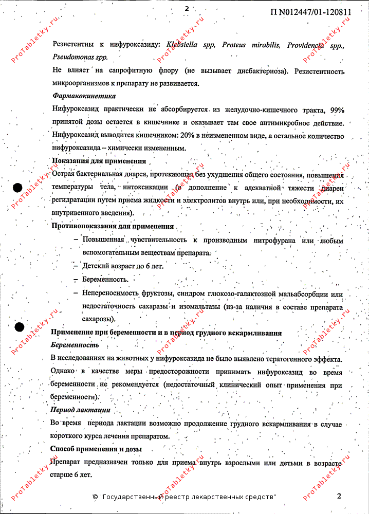 Резистентны к нифуроксазиду: Klebsiella spp., Proteus mirabilis, Providencia spp., Pseudomonas spp.