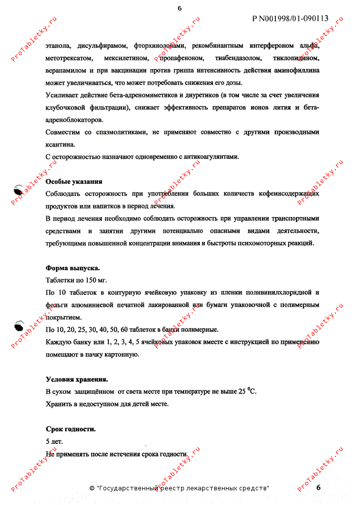 Противодиарейные препараты и энтеросорбенты снижают всасывание аминофиллина.