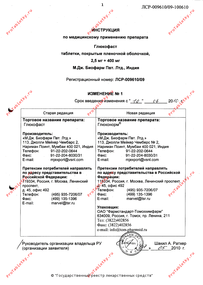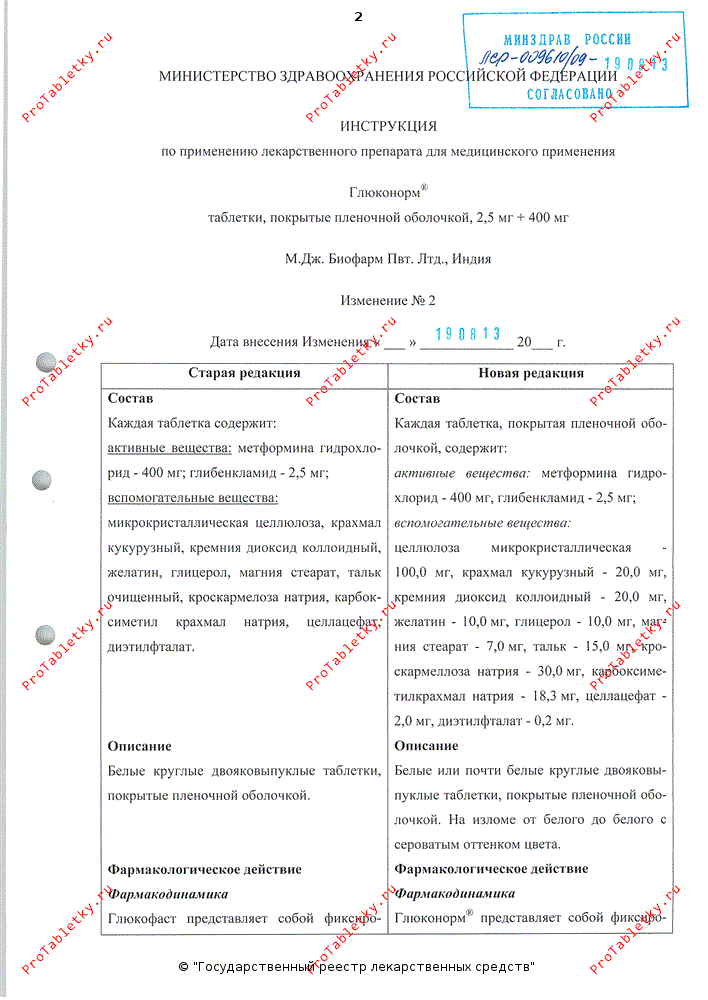- для замещения предшествующей терапии двумя препаратами (метформином и глибенкламидом) у больных со стабильным и хорошо контролируемым уровнем глюкозы крови.