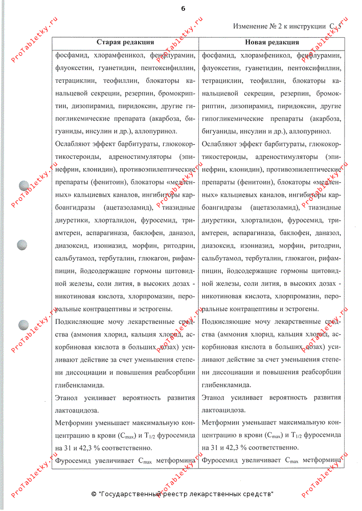 Метформин уменьшает Cmax и T1/2 фуросемида на 31% и 42.3% соответственно.