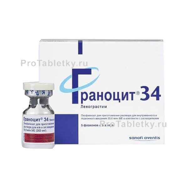 В связи с потенциальным риском, связанным с появлением выраженного лейкоцитоза, во время лечения Граноцитом 34 следует регулярно контролировать количество лейкоцитов в крови. Если количество лейкоцитов достигает 50 000/мкл, применение Граноцита 34 должно быть немедленно прекращено.