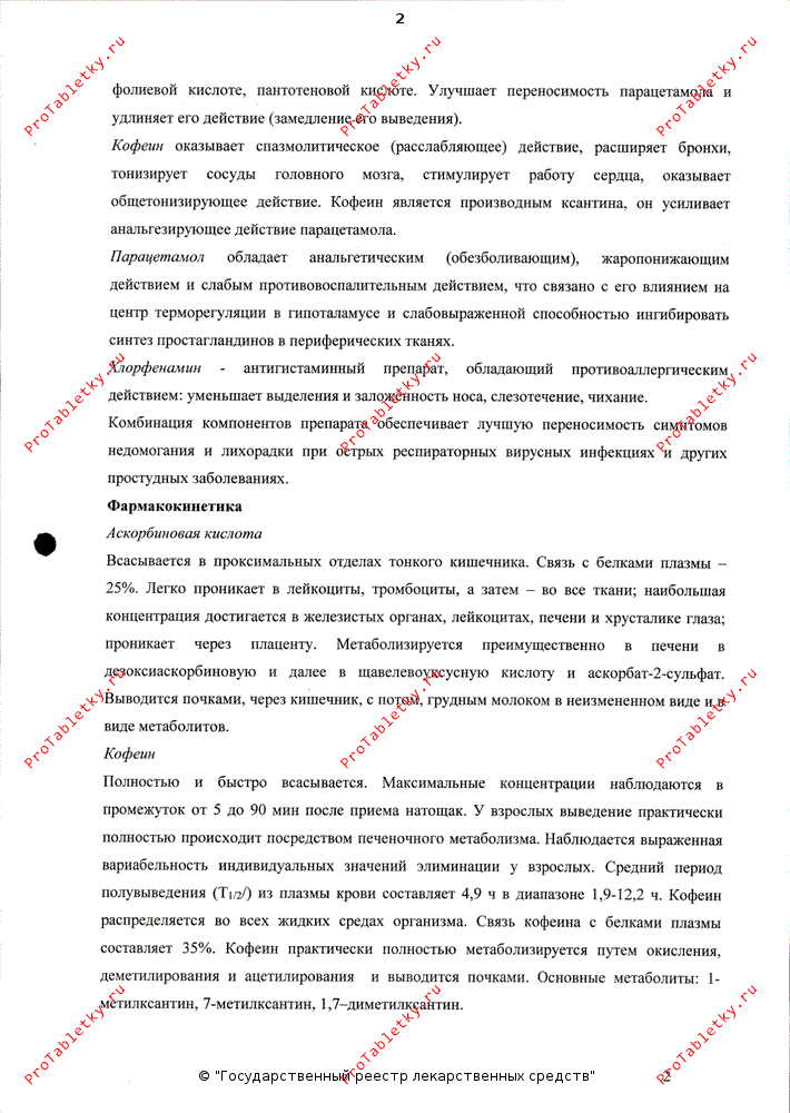 Комбинация компонентов препарата обеспечивает лучшую переносимость симптомов недомогания и лихорадки при острых респираторных вирусных инфекциях и других простудных заболеваниях.