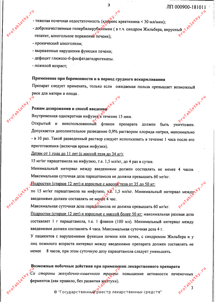 T1/2 составляет 1-3 ч. У пациентов с циррозом печени T1/2 несколько больше. Почечный клиренс парацетамола составляет 5%.