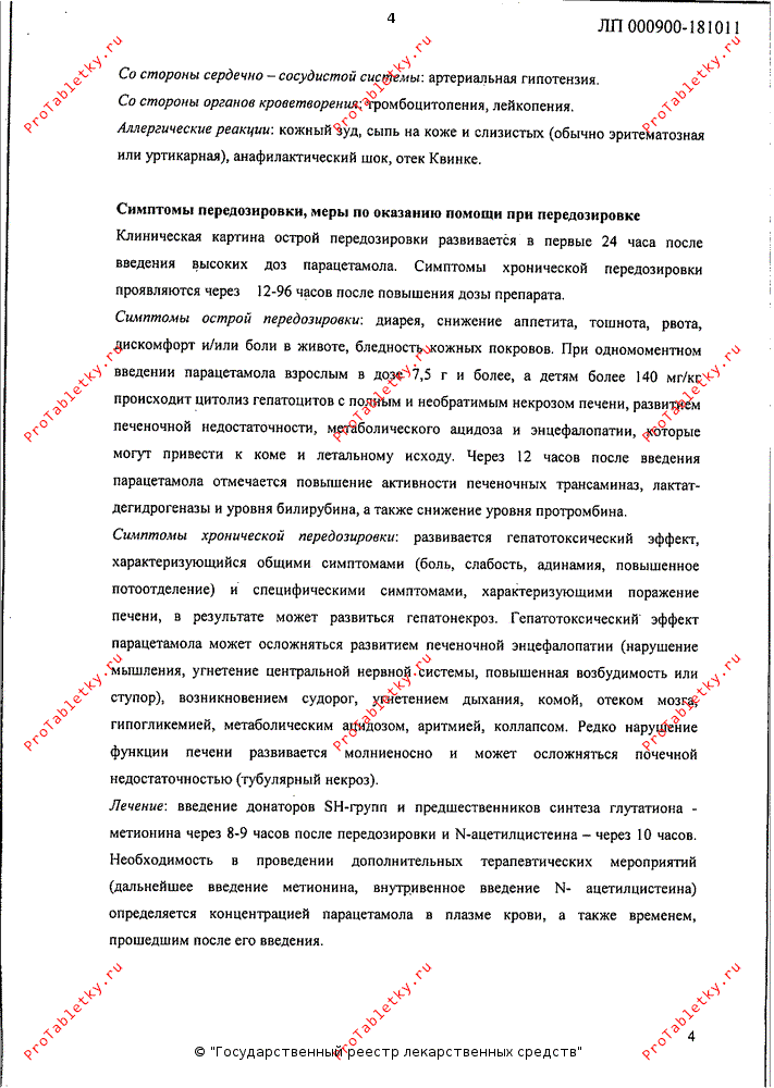 При длительном применении парацетамола необходим контроль картины периферической крови и функционального состояния печени.
