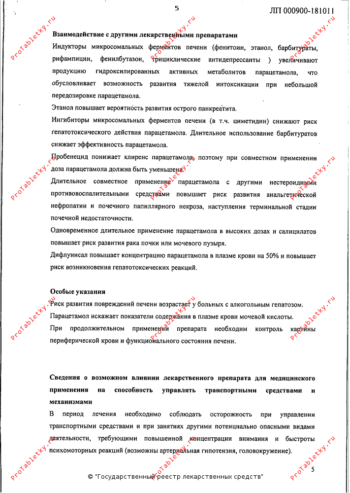 При одновременном применении с пробенецидом возможно уменьшение клиренса парацетамола; с рифампицином, сульфинпиразоном - возможно повышение клиренса парацетамола вследствие повышения его метаболизма в печени.