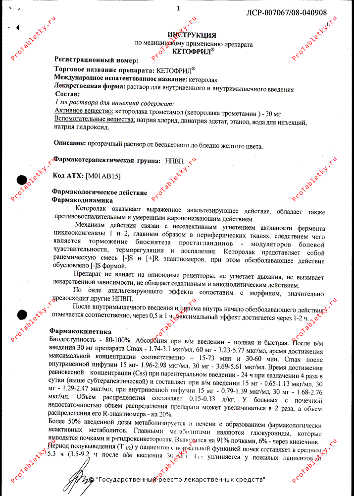 | кеторолака трометамол (кеторолака трометамин) | 30 мг |