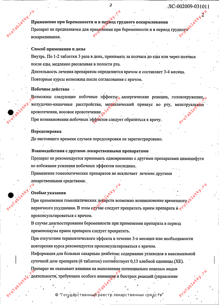 | Cimicifuga racemosa (Cimicifuga) D2 | 25 мг |