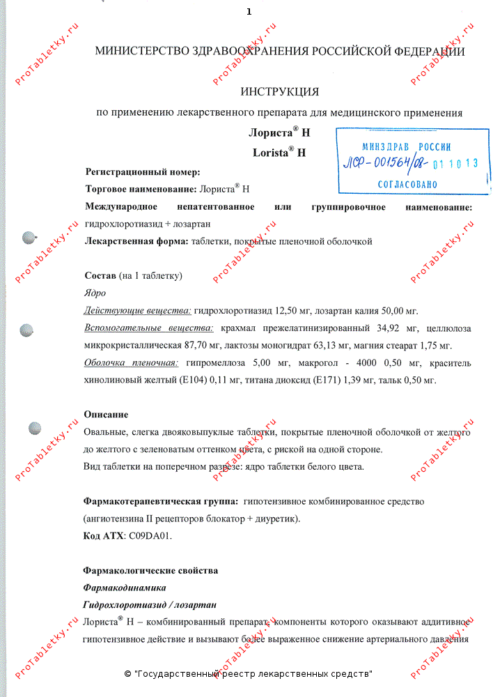 Лориста Н (Lorista H): 10 отзывов врачей, инструкция по применению, аналоги, инфографика, 1 форма выпуска.