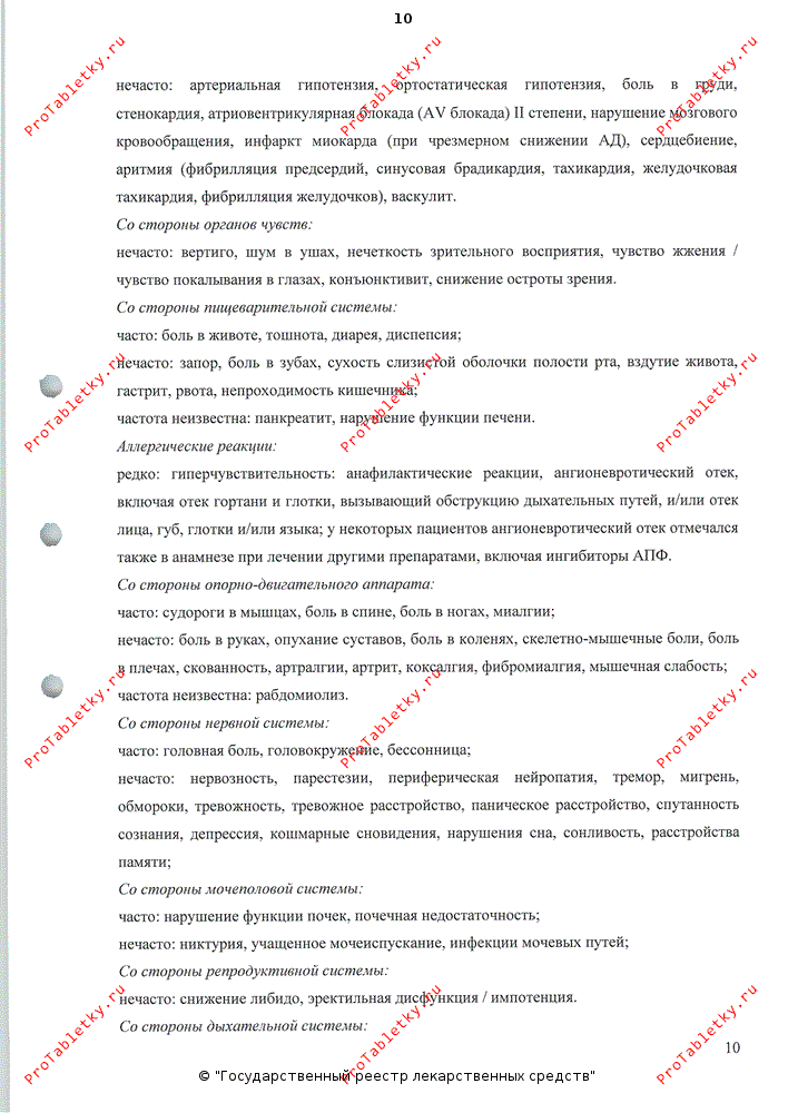 Прочие: часто - астения, слабость, периферические отеки, боль в груди.