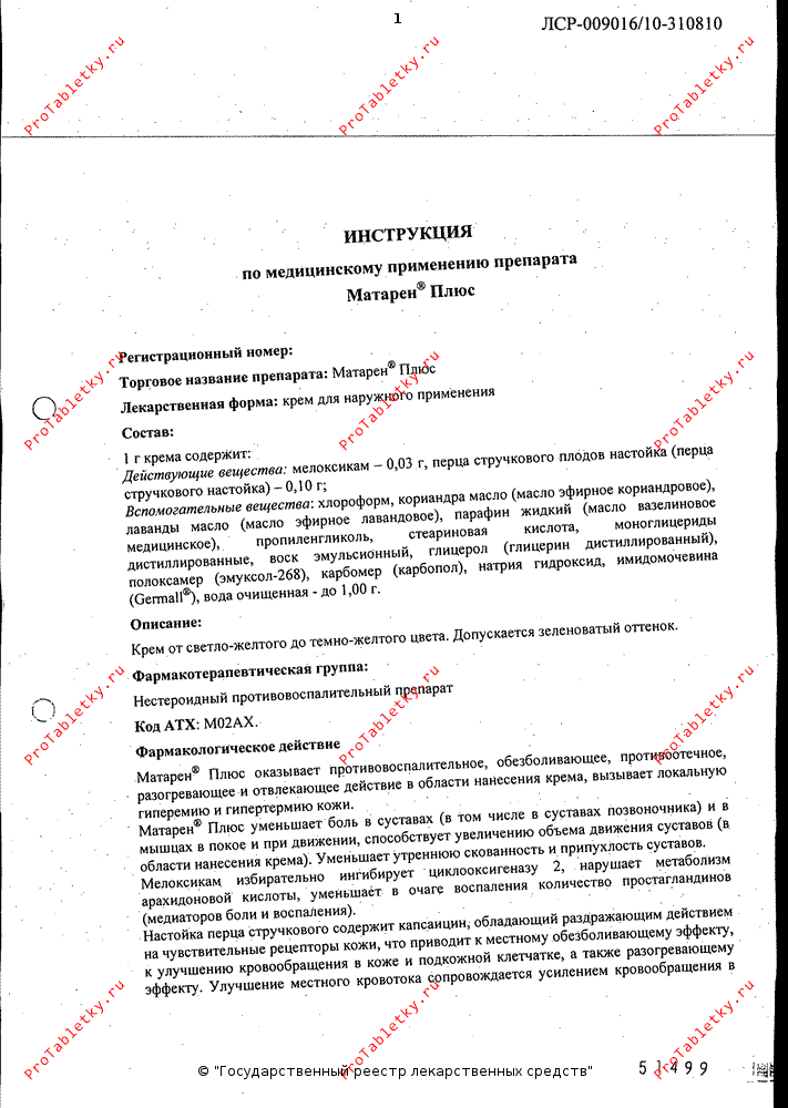 Матарен® Плюс оказывает противовоспалительное, анальгезирующее, противоотечное действие, может вызывать легкую локальную гиперемию кожи, не оказывая при этом выраженного раздражающего действия на кожные покровы.