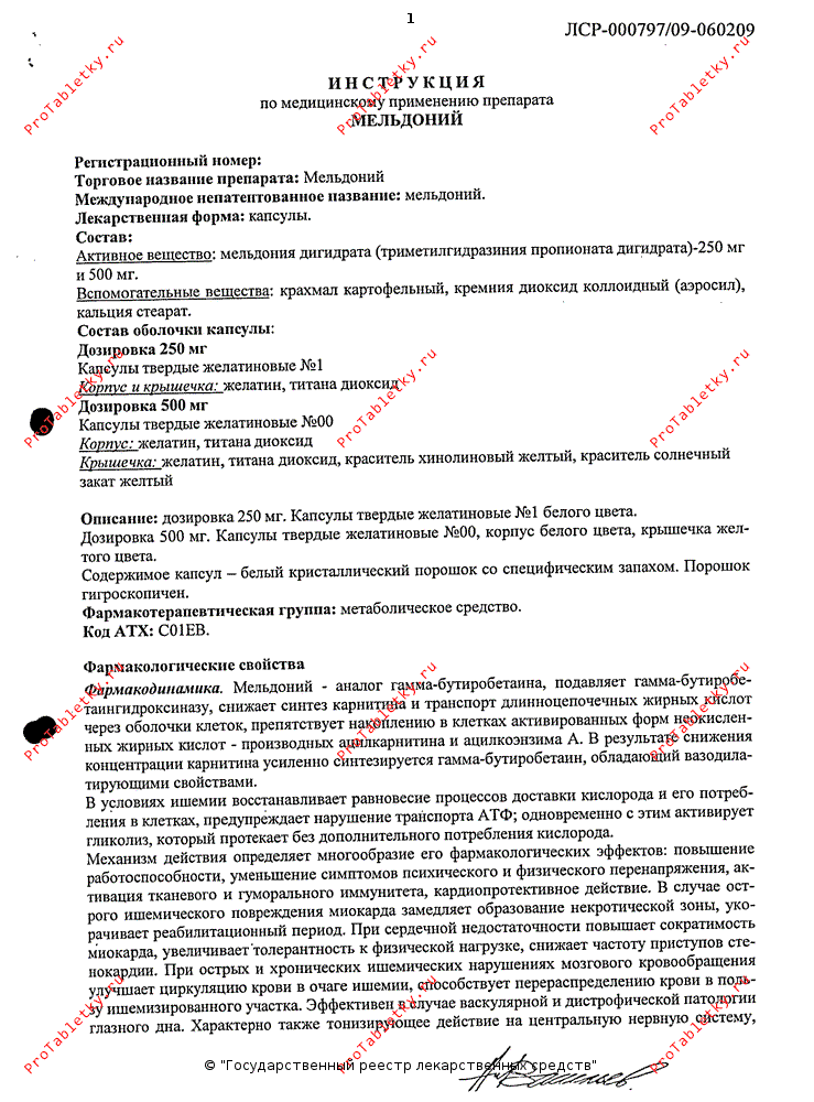 Инструкция по применению мельдония