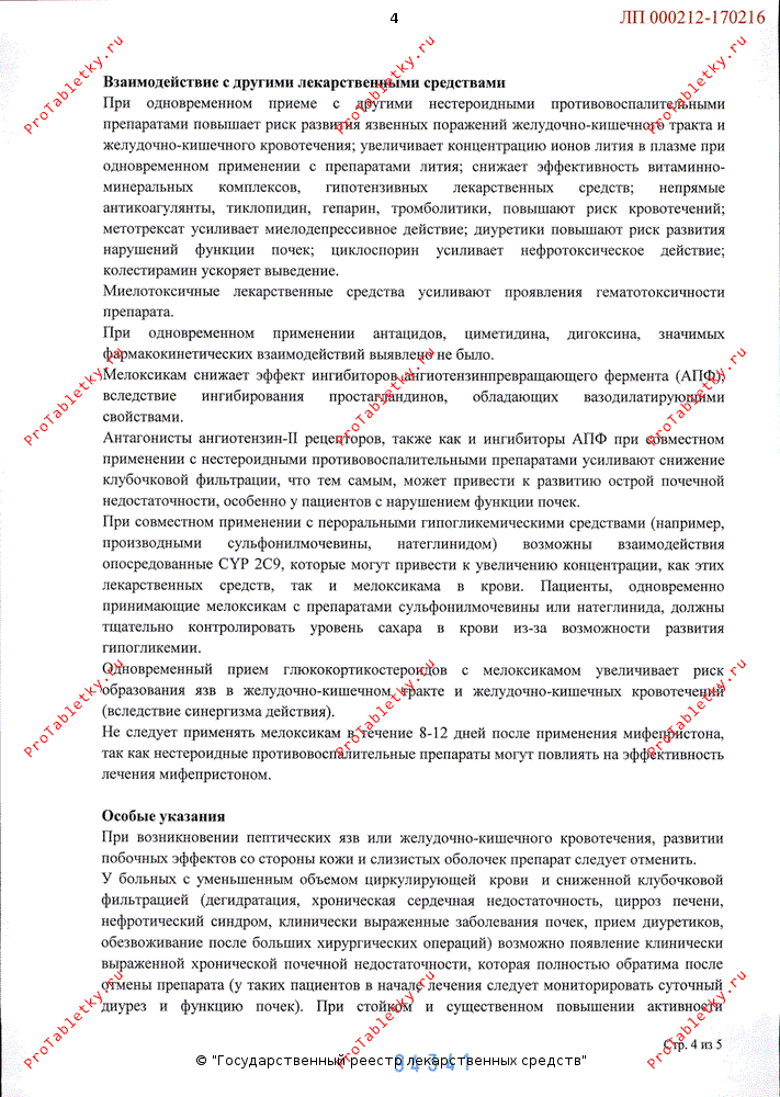 При возникновении пептических язв или желудочно-кишечного кровотечения, развитии побочных эффектов со стороны кожи и слизистых оболочек препарат следует отменить.