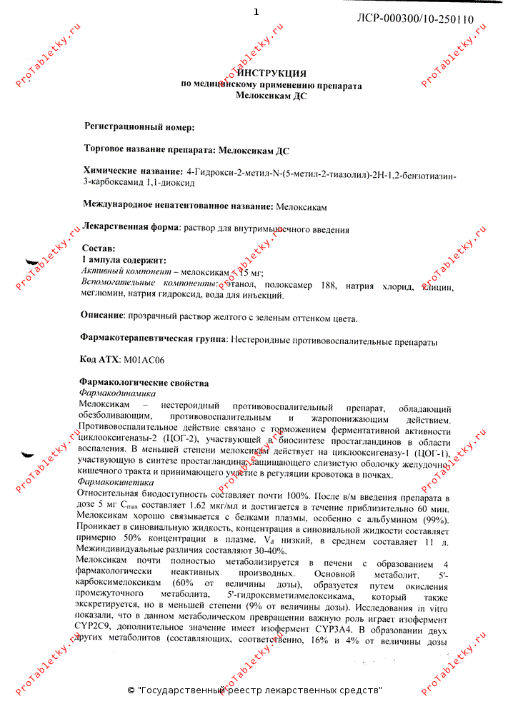 Инструкция по применению мелоксикама дс