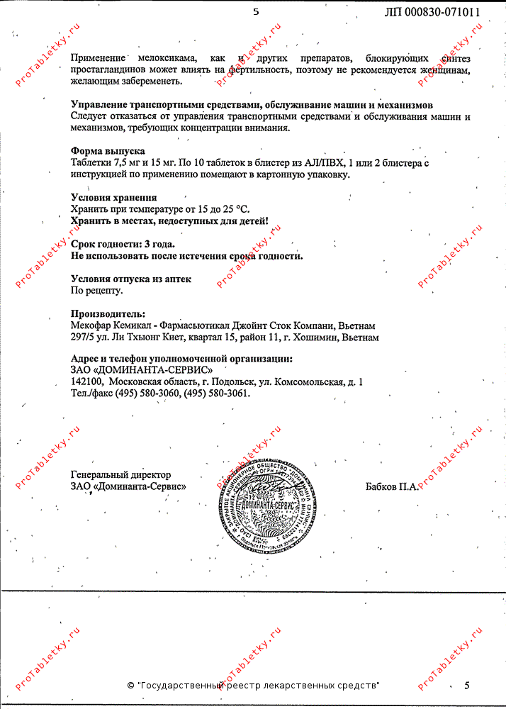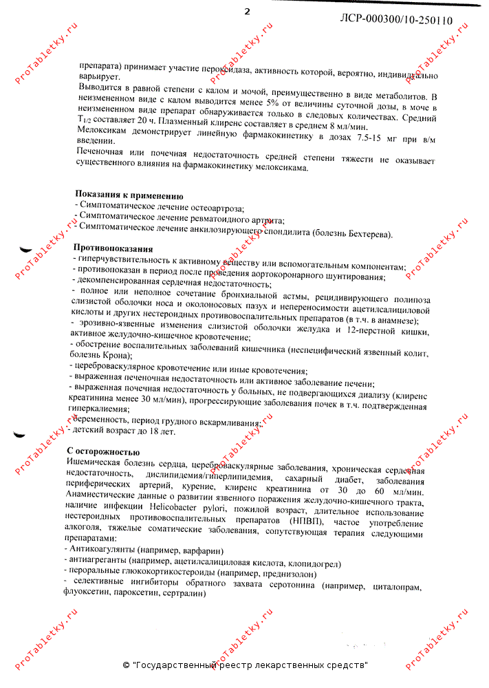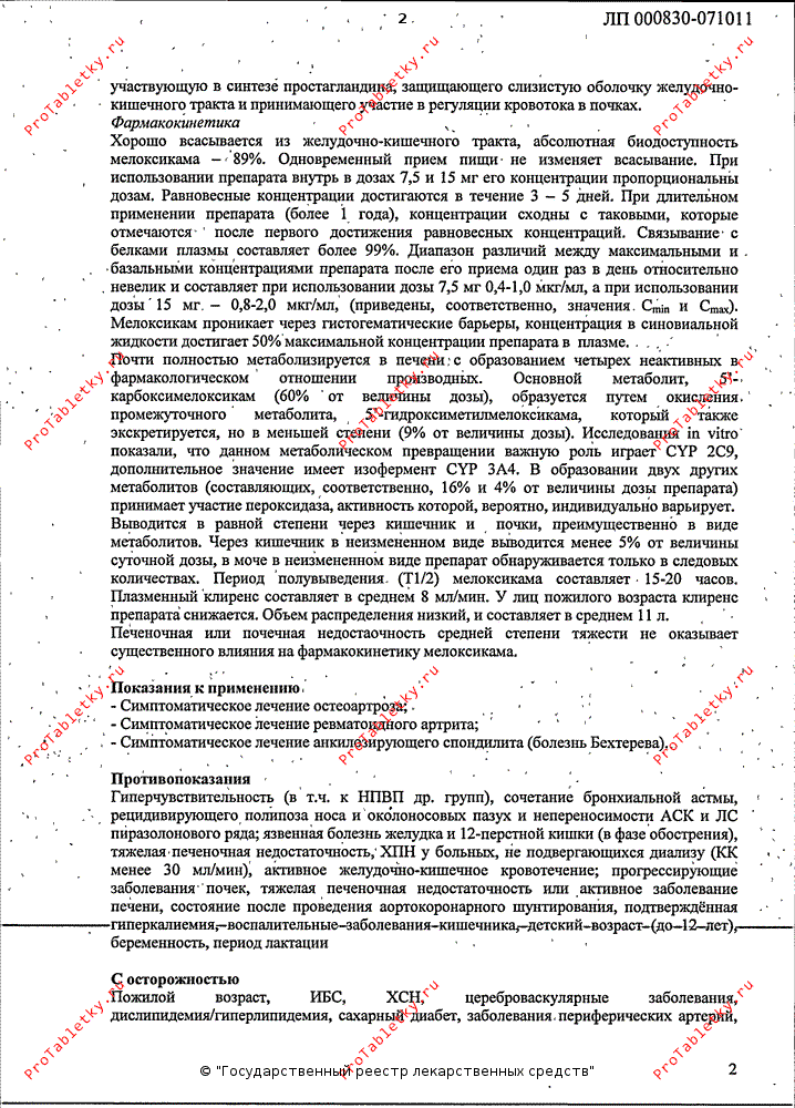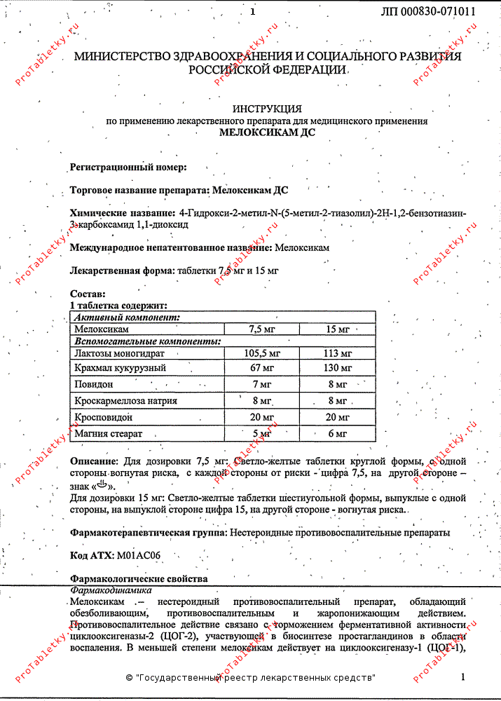 | мелоксикам | 7.5 мг |