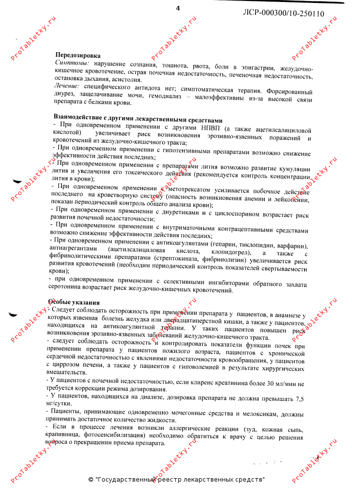 При одновременном применении с НПВС повышается риск развития язвенных поражений ЖКТ и желудочно-кишечного кровотечения.