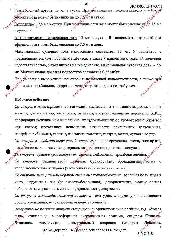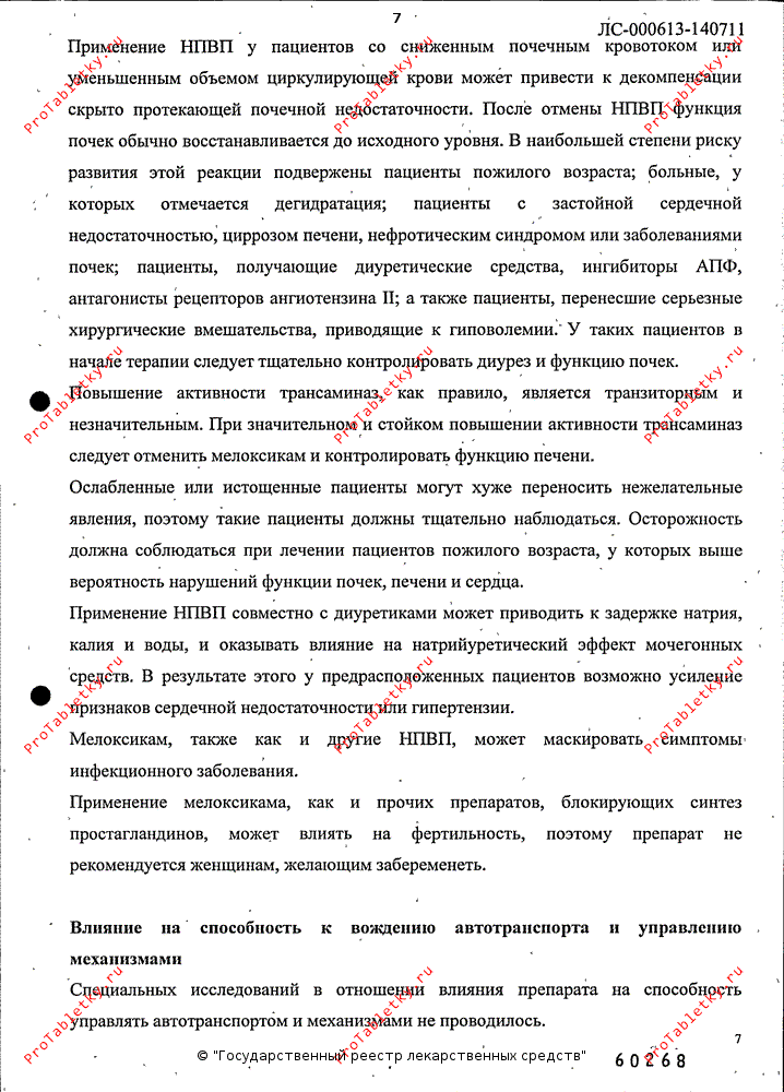 Мелоксикам, также как и другие НПВС, может маскировать симптомы инфекционных заболеваний.
