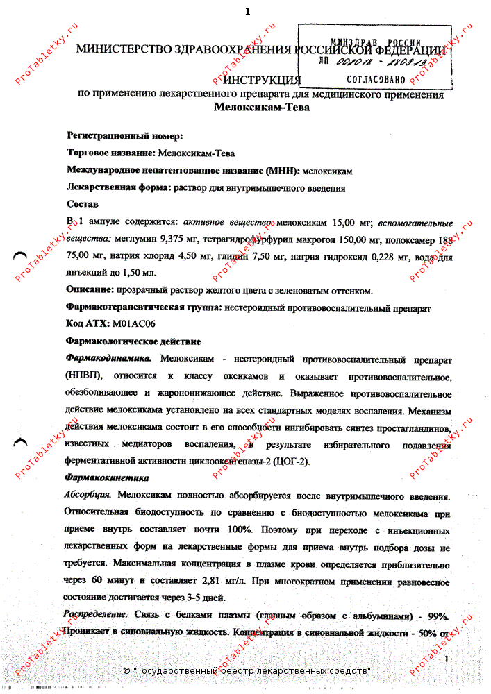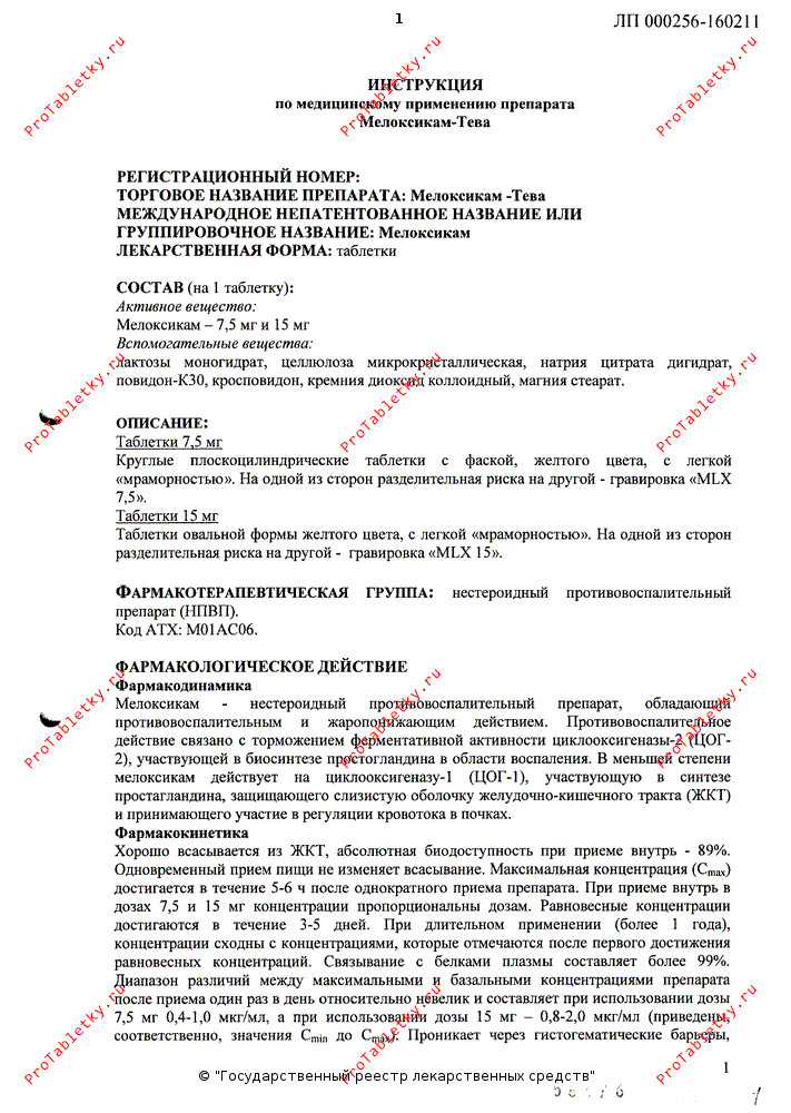 Люблю препараты фирмы "ТЕВА". "Мелоксикам" - хорошй дженерик (воспроизведённый препарат) с предсказуемой эффективностью. Умеренный, но вполне отчётливый противовоспалительный эффект и умеренный противоболевой. Переносимость вполне удовлетворительная. У взрослых разовая доза, она же и суточная должна быть 15 мг. При применении меньших дозировок может сложиться ложное впечатление о недостаточной эффективности там, где действия препарата вполне достаточно. Конечно, его нужно принимать во время или после еды и хорошо запить водой. |