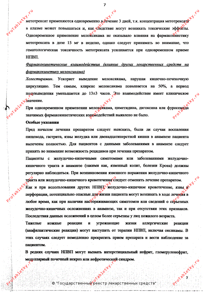 При одновременном применении колестирамин ускоряет выведение мелоксикама.