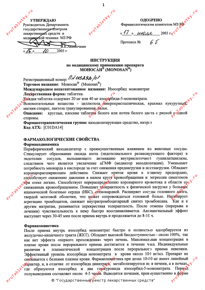 Органические нитраты уже длительное время являются основными препаратами в терапии ишемической болезни сердца. По сравнению со своими ближайшими родственниками — динитратами, они имеют ряд неоспоримых преимуществ. Так, при пероральном приеме значительная часть изосорбида динитрата деактивируется в результате первого прохождения через печень, что снижает его биодоступность (в среднем она составляет около 40%). Что же до изосорбида мононитрата (моносана), то его подобная участь минует, и он поступает в системный кровоток практически в неизмененном виде, сохраняя себя для серьезных дел.