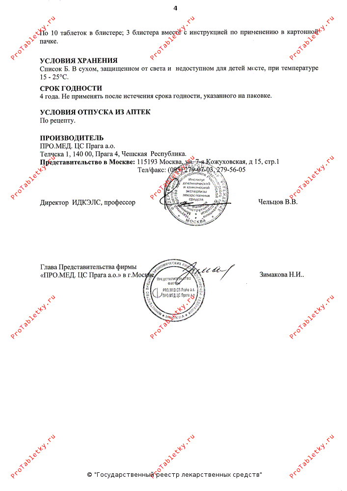 Вспомогательные вещества: целлюлоза микрокристаллическая, крахмал кукурузный, магния стеарат, лактоза гранулированная, тальк.
